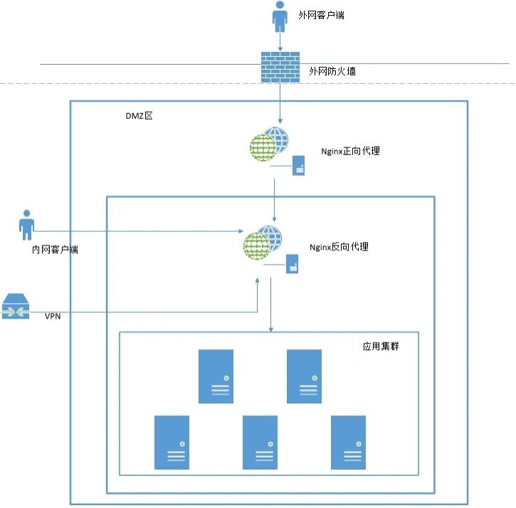 无论是产品类还是方案类,在实际项目中大部分都是部署在Linux服务器中,而再基于Nginx进行代理和负载均衡、域名解析等,最终实现外部访问和使用。而在实际的部署和使用过程中,出于安全性考虑,都会进行内外网交互,进行多层安全加固。而作为中间件类产品,IDM、ESB等产品往往需要内外网的不同访问方式,从而满足不同场景。