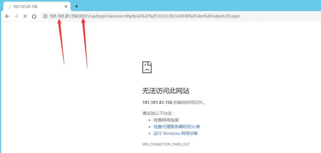 内网Nginx的listen为8007端口,proxy_pass为http://10.0.0.9:3030,直接指向内网的IDM产品,并且代理端口为8007。在101.101.81.156服务器上通过浏览器直接访问http://10.0.0.9:8007(两台服务器已经完成了内网互通),测试结果如下: