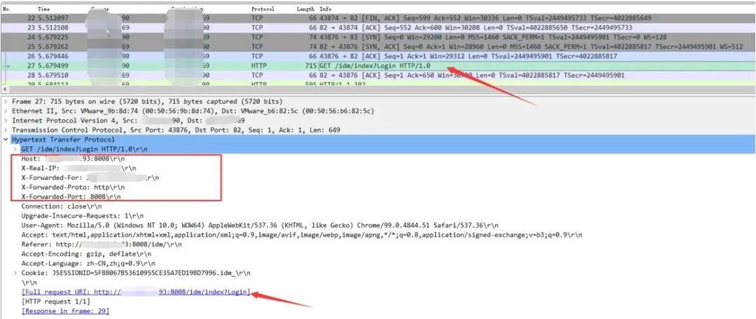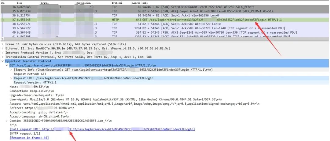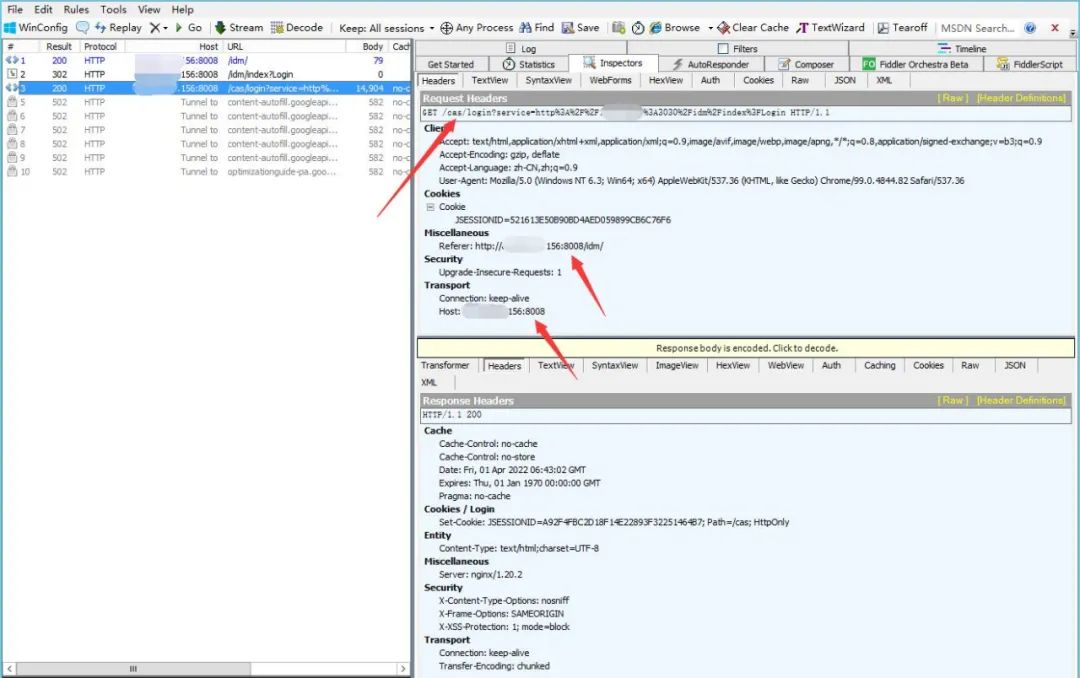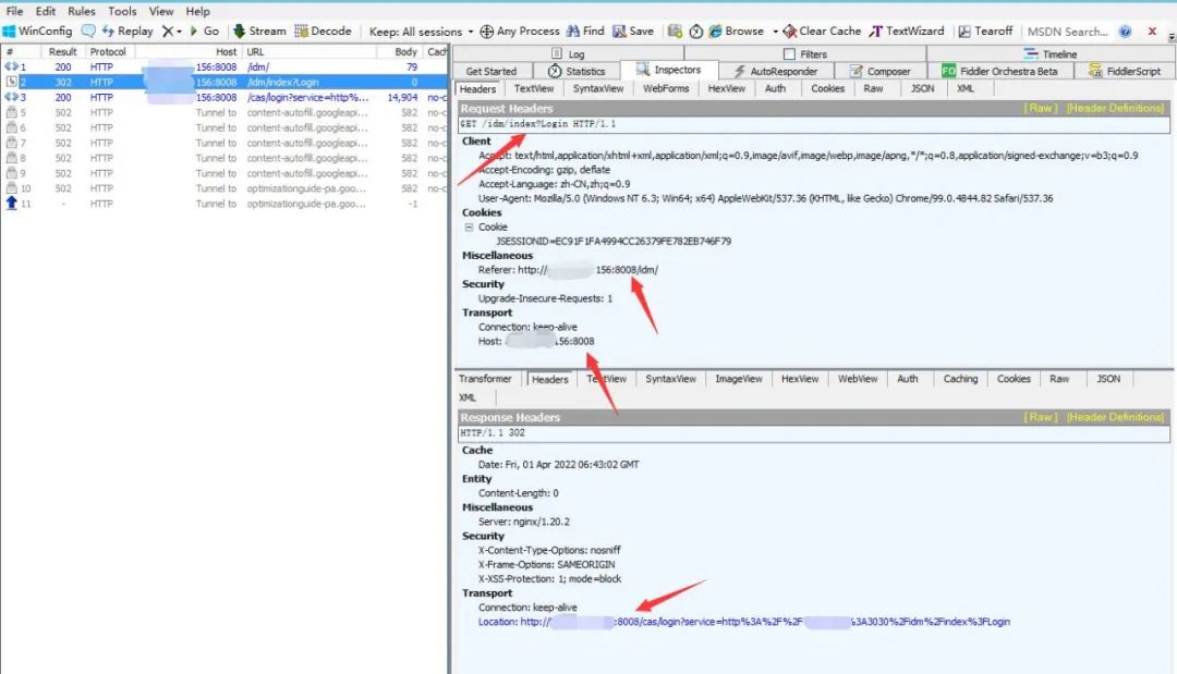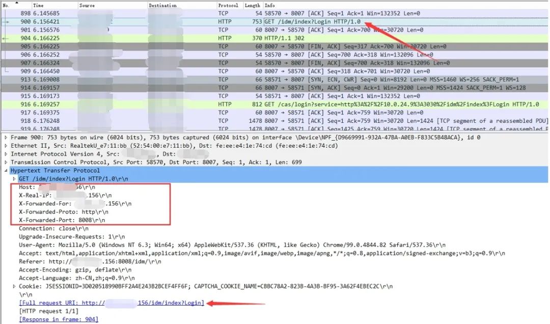 在登录时,拦截到CAS页面时出现外网IP+内网Nginx端口的问题,导致访问出错。为了分析访问时端口异常的问题,通过Fiddle和Wireshake抓包分析,分析前后端的返回信息,从而进一步定位问题。