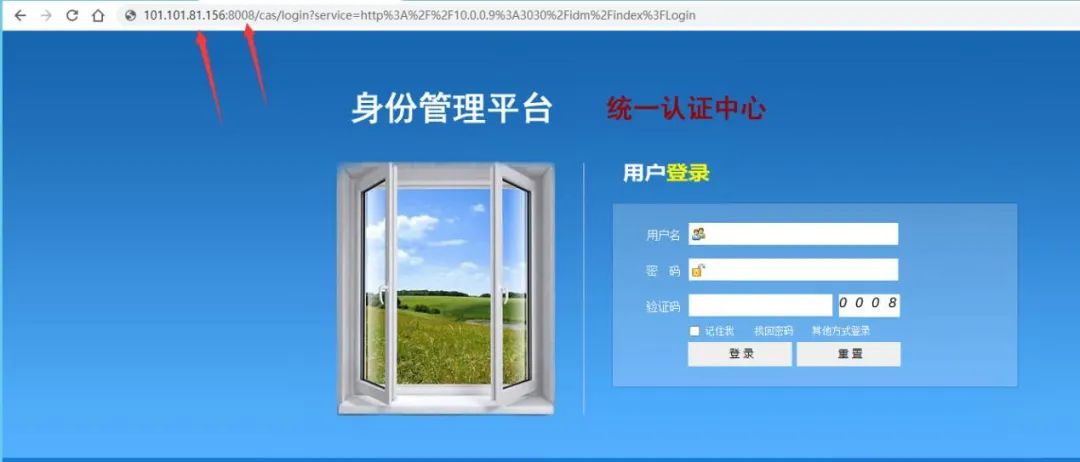 1.先通过外网地址访问,通过8008端口访问到内网,请求到IDM;