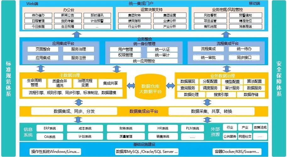 数据行合并如上方最终显示样式,从下向上第一行是应发薪资、奖励薪资、奖惩薪资等,第二行为基础薪资、基础薪资、基础薪资都是相似的配置,如果勾选数据行合并后会将相同的第二行进行合并成一行,可以按照此配置来创建综合业务报表。主数据平台是将企业的核心数据,如组织、人员、岗位、客户、供应商等数据信息进行统一管理,通过基础数据平台将企业的主数据进行整合,集中进行数据的清洗和标准化,并以集成服务的方式把统一的、完整的、准确的、具有权威性的主数据分发给各业务系统。助力企业创建并维护主数据的统一视图,通过保证统一视图的准确性、一致性和完整性,提高数据质量,逐步统一企业级数据模型,简化改进企业流程并提高业务的响应速度。而主数据从各个业务系统拉取数据进行数据的同步、初始化以及分发同样也是通过ESB进行服务件的集成的。1.主数据分类:目前大家看到的是主数据管理屏的首页,在左侧是主数据的大分类,包括常见的组织人事、客商数据、财务资金、物资资产等主数据大分类,当然主数据分类可以根据客户实际需求进行分类拓展;2.数据管理:以人员主数据为例,主数据管理平台包括树形表格、树形管理、简单列表以及主从列表四种功能模型,现在的人员主数据则是和组织主数据树形管理功能模型,是简单列表关联组织树的形式,可以在数据管理端进行数据的增删改查、导入导出等操作,目前所看到的页面、表单以及功能按钮均是又后台配置而成;3.数据同步:主数据的源头通常是来源于各个业务系统,例如人员主数据来源于人事系统,通过ESB可以开发对应的人员同步集成流程(在ESB管理控制台调用该流程演示数据同步,同时查看ESB的应用集成日志以及主数据的数据同步日志)。4.数据分发:同时下游系统需要主数据分发数据信息可以采用任务的方式进行数据的下发,可以在主数据管理平台生成对应的任务选择需要主数据的应用系统,将数据进行分发(演示数据分发过程,将数据分发至DAP数据分析平台,同时在DAP数据分析平台进行验证查看数据分发)。数据质量模块可以在MDM后台配置处配置主数据的数据巡检字段以及巡检策略还有数据清洗的策略等等,接下来可以数据巡检处进行数据的巡检查找出对应的相似数据进行汇总,接下来人工对相似数据信息进行调整,同时也可以进行数据的批量数据清洗以及数据血缘的查看。前面我们讲了数据的全生命周期的管理,而数据是通过模型进行管理的,主数据的模型包括数据建模、功能建模以及流程监控,数据建模主要生成存储数据的对应表结构,可以配置表单是单表、树形以及主从表的数据格式,接下来配置数据的具体字段信息,也就是元数据信息,可以配置元数据的基础属性,包括编码、名称、长度、显示类型、是否导入、是否外键等等。