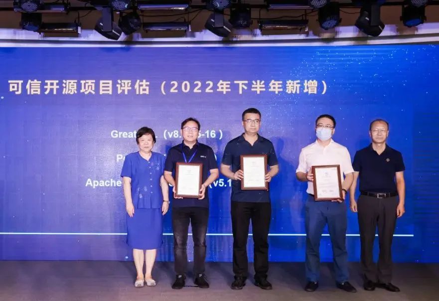大会现场,一系列可信开源结果重磅发布。GreatSQL社区凭借近2年持续的开源社区建设积累及优秀的社区技术成果与开源产业贡献,在开源项目评估环节中脱颖而出,GreatSQL开源项目通过了中国信通院《开源项目选型参考框架》的检验要求,并颁发证书。此举充分证明GreatSQL社区及开源项目的整体成熟度能力受到了业内权威机构的认定背书。