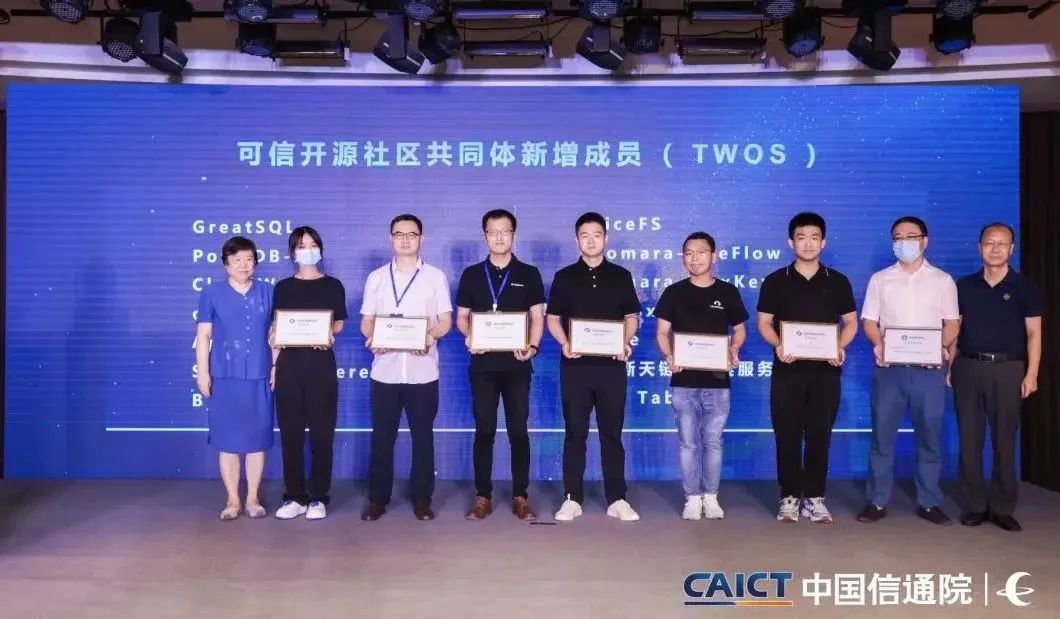 与此同时,经过组委会及评审机构的严格评估遴选,GreatSQL社区接连入选了科技制造开源社区和可信开源社区共同体两项社区体系成员单位,并加入TWOS“银行计划”组织,现场获得授牌。