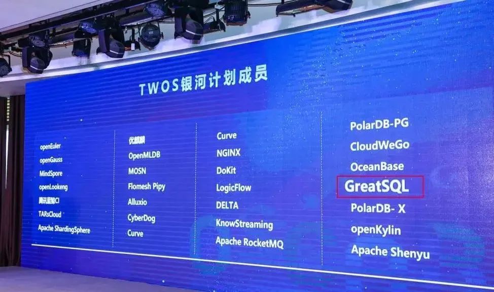 万里数据库主导的开源数据库社区——GreatSQL社区受邀亮相大会,通过了中国信通院评测的“可信开源项目成熟度能力检验”,入选可信开源共同体和科技制造开源社区2个开源社区体系成员单位,并加入TWOS“银行计划”组织,以实际行动为共建开源产业生态建言献策。