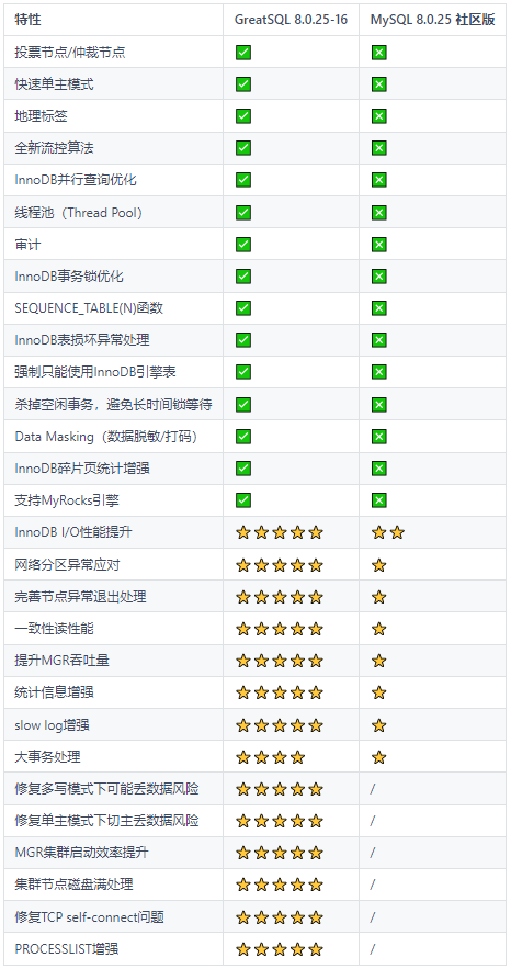 GreatSQL社区孵化了开源数据库项目GreatSQL,其专注于提升MGR可靠性及性能,支持InnoDB并行查询等特性,是适用于金融级应用的国内自主MySQL版本,可作为MySQL或Percona Server的可选替换,用于线上生产环境,且完全免费并兼容MySQL或Percona Server。通过对比GreatSQL8.0.25-16新版本与MySQL 8.0.25社区版本,发现优化升级后的GreatSQL在性能、稳定性方面都得到了大幅提升。