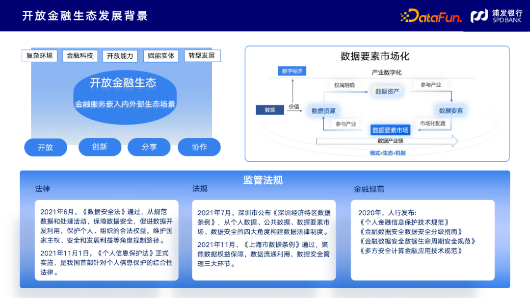 近年来随着我国数据立法进程的不断加快,尤其强调数据应用过程中的数据安全。金融机构原来通过向外部采购大量的数据用于如营销、风控、反洗钱等环节,这种简单粗暴的数据共享方式已经不太可行了。