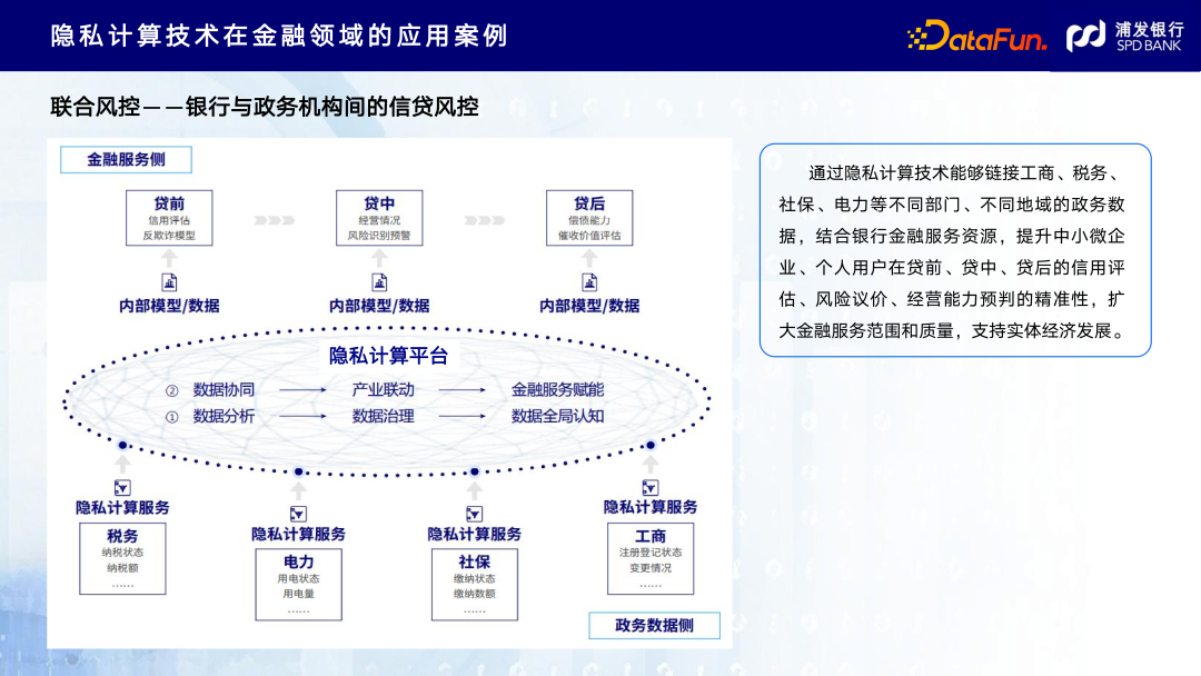 为什么现在区块链和隐私计算会有个比较紧密的一个结合?因为金融行业是一个强监管的机构,所以我们面向客户去提供服务的时候,当客户对我们的计算结果提出质疑的时候,不可能跟客户说这是一个黑盒,我们看不到原始数据,所以不能够提供相应可解释的服务。