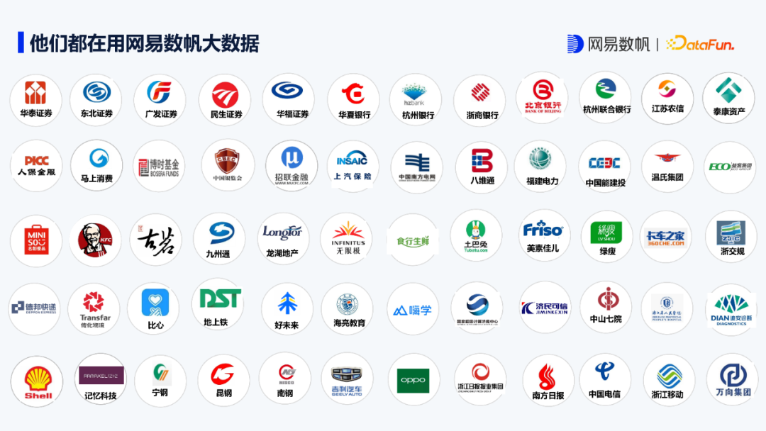 经过网易集团内部业务的长期实践,具备了领先的方法论,并积累了很多行业落地案例,同时也明确了网易数帆大数据的商业化定位。