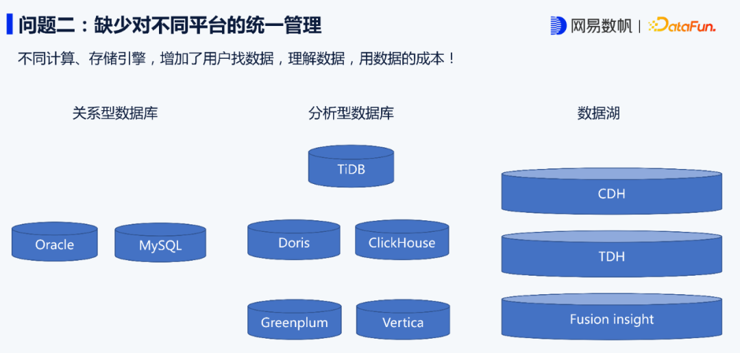 不同计算、存储引擎,增加了用户找数据,理解数据,用数据的成本。