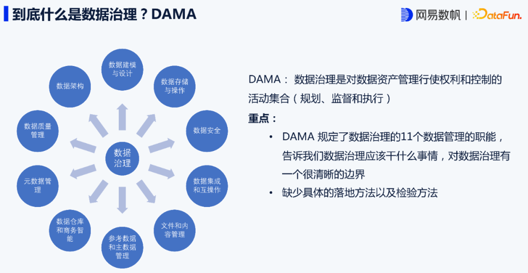 行业权威机构DAMA规定了数据治理的11个职能象限,但它缺少具体的落地方法和经验。