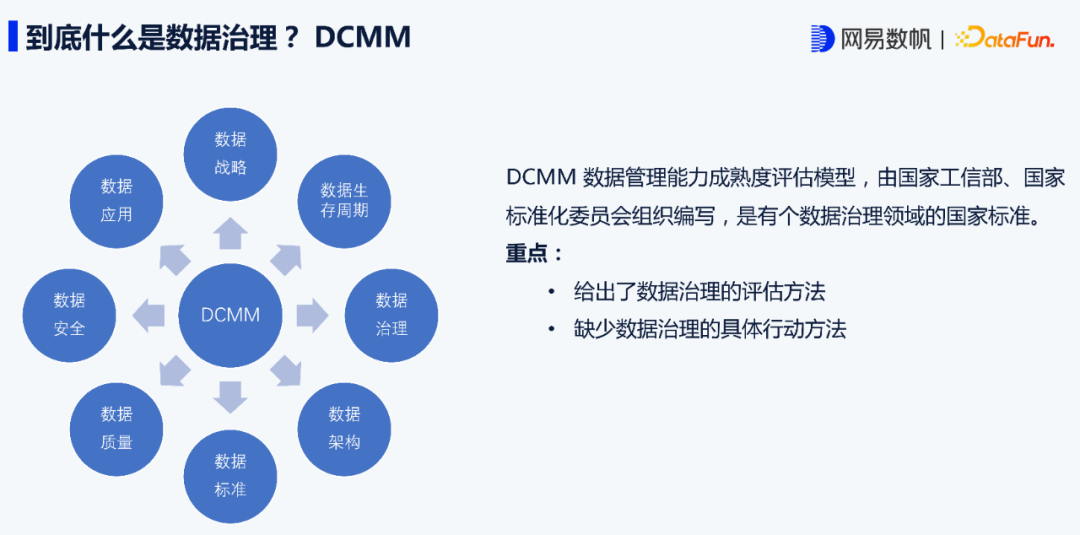 DCMM是我国在数据治理领域的第一个国家标准,它给出了客观的评价方法,但仍然缺少具体行动方法。