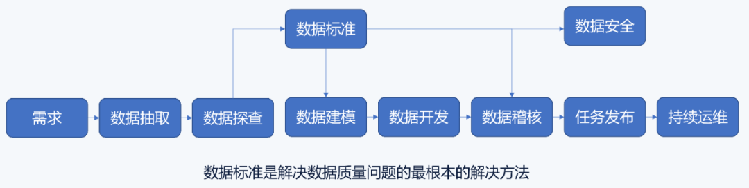 数据标准、数据质量与数据开发严重脱节,规范只能停留在字典层面,无法融入数据生产的流程中,不能有效的落地执行和监督。