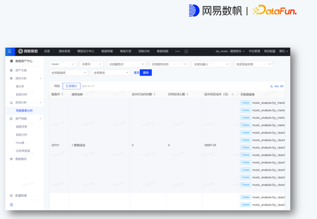 基于ROI的数据资产沉淀,我们通过可视化分析页面可以看到每个任务精细化的场景管理,能够让业务人员对于没用的数据进行持续的治理下线。