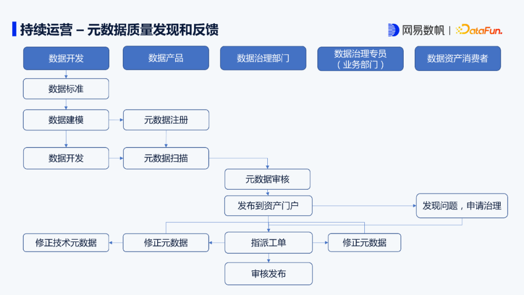 我们在持续运营过程中,数据资产消费者发现数据质量有问题的时候,可以去申请数据治理。数据管理部门可以指派工单的形式要求业务部门在规定的时间规定的地点完成数据对应问题的修复。