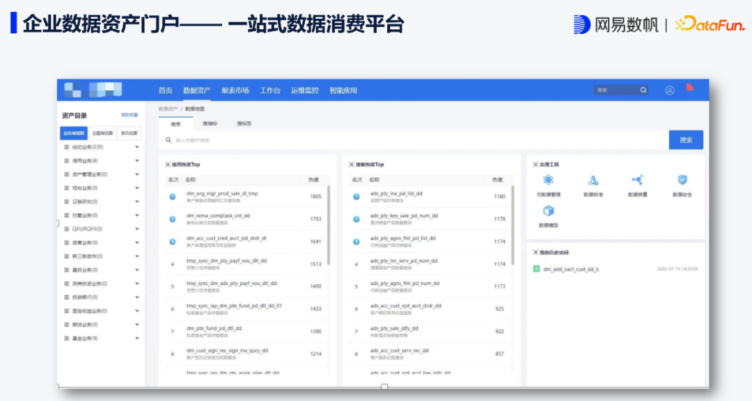 通过一站式数据消费平台和门户,业务人员可以在门户上看到企业有哪些数据、哪些核心的报表、哪些核心的数据治理应用。