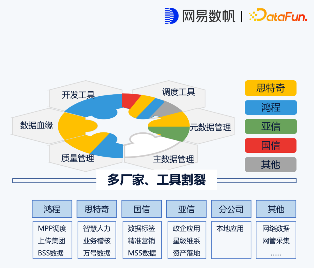 不同厂商,不同工具之间严重割裂,数据质量的稽核规则无法和数据标准中数据元的值域约束打通,数据标准中数据元无法跟数据建模工具无法联动,元数据管理中的数据安全等级和安全中心的数据脱敏无法联动。
