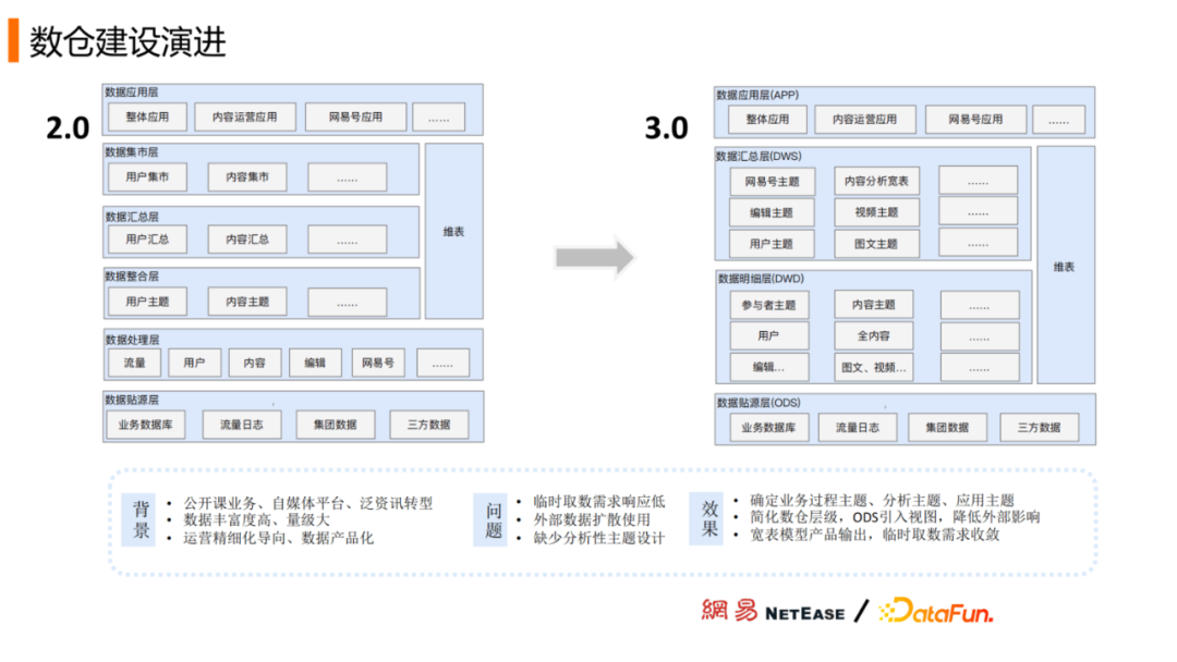 我们开启了数仓2.0,从零到一去搭建数据团队,数仓建模采用维度建模的方法,自下而上进行数据建设,以高效支持业务需求为目的。我们也取得了如下的成果,确定了一个清晰的数据分层,确定了面向业务过程的数仓主题后使得影响范围是可控的,数据输出产品化,衍生了传媒数据报表门户、内容运营平台等数据产品,较好地支持了定制化的数据产品需求,也较好的支持了业务的精细化运营。