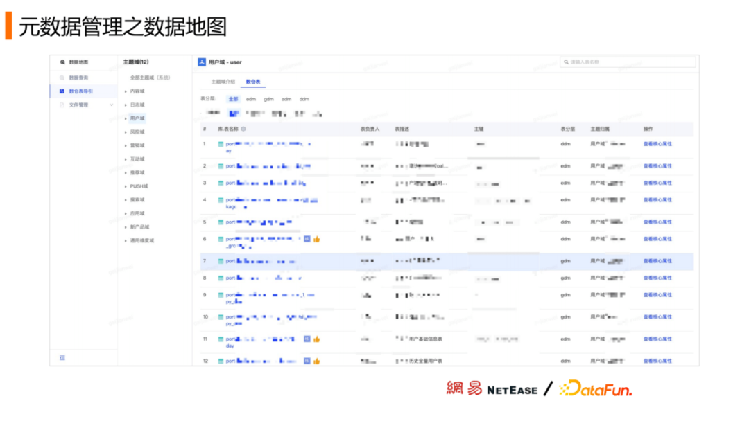 第一块是数仓表导引,基于数据的使用频率以及业务的重要性,将数仓每个主题域下的一些核心的数据表对外开放,大家可以对数仓产出的所有的数据有个全局性的了解。