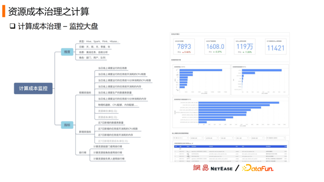 搭建计算成本的监控体系,设计相应维度和指标。