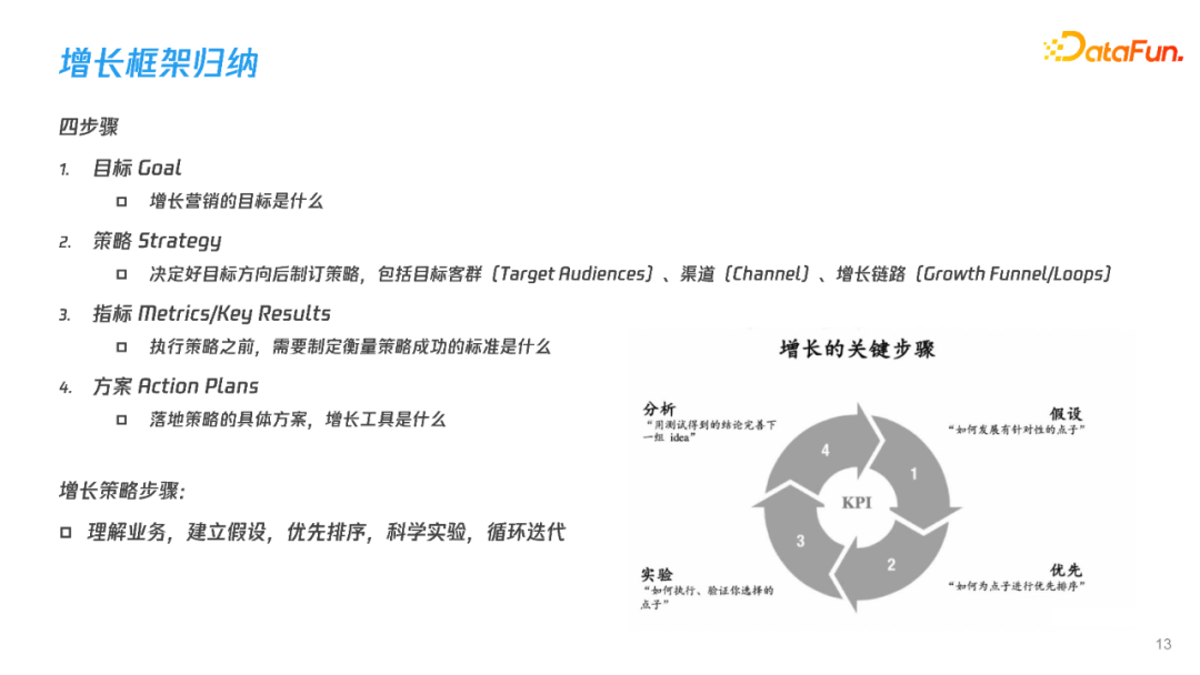 可以看到,增长是“有效方法、有效模型”接入可落地的应用。显然,增长要结合目标的逐个环节去达成。