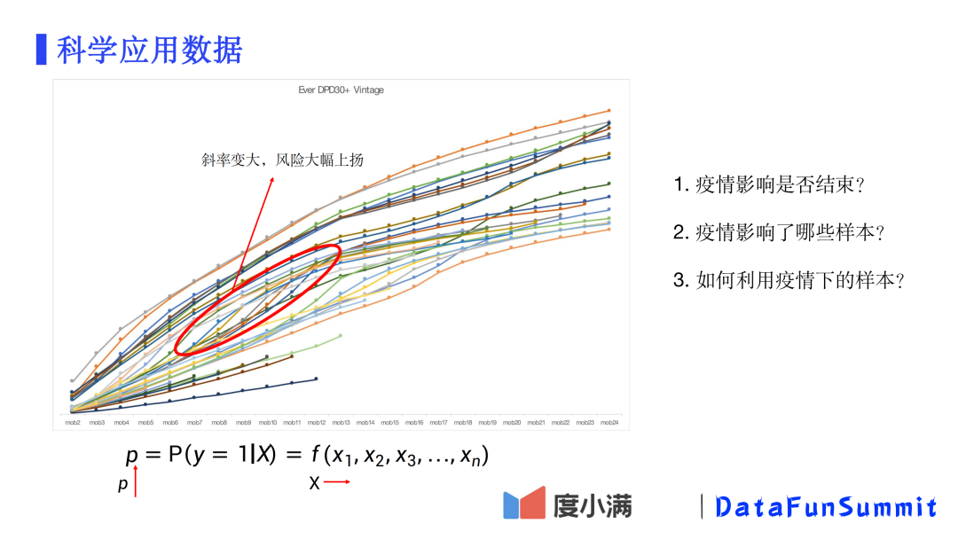 回顾之前关于选择观察期窗口的vintage图表。如上图红框中所示,可以看到很多月份的曲线斜率突然大幅上扬。按时间去对应的话,就会发现这段时间正是2020年初新冠疫情爆发的时间。疫情的爆发导致逾期率大幅上涨,而对疫情的影响我们没有任何历史经验,也就是说历史学习到的特征X(用户属性)与目标Y(逾期率)之间的关系已经不适用在疫情场景下了。于是针对当下,我们需要考虑三个问题: