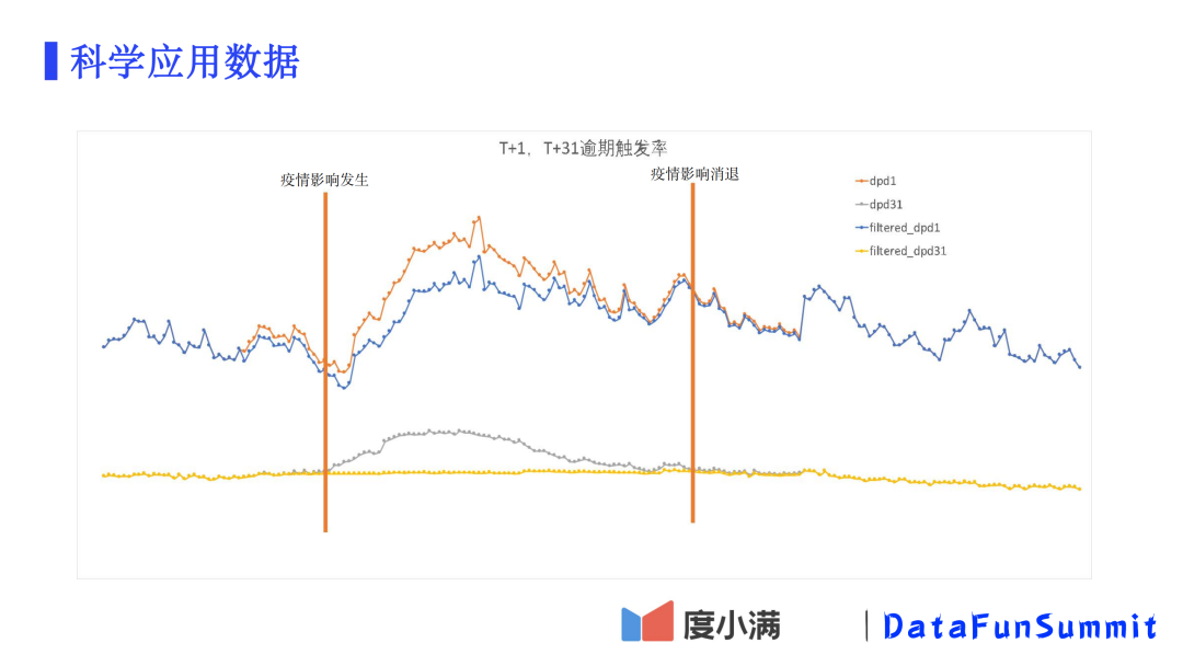 通过以上两种方法过滤后,我们再观察下随时间的逾期率变化。从上图可以看到,原先逾期30天以上的曲线在疫情发生期间是大幅上扬的,但过滤后整个线就比较平了。