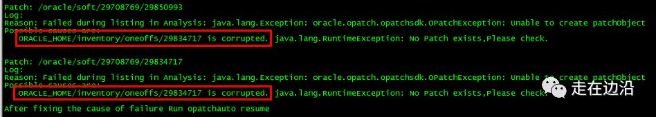 通过备份恢复,修改以上补丁安装日志中的错误,再进行安装