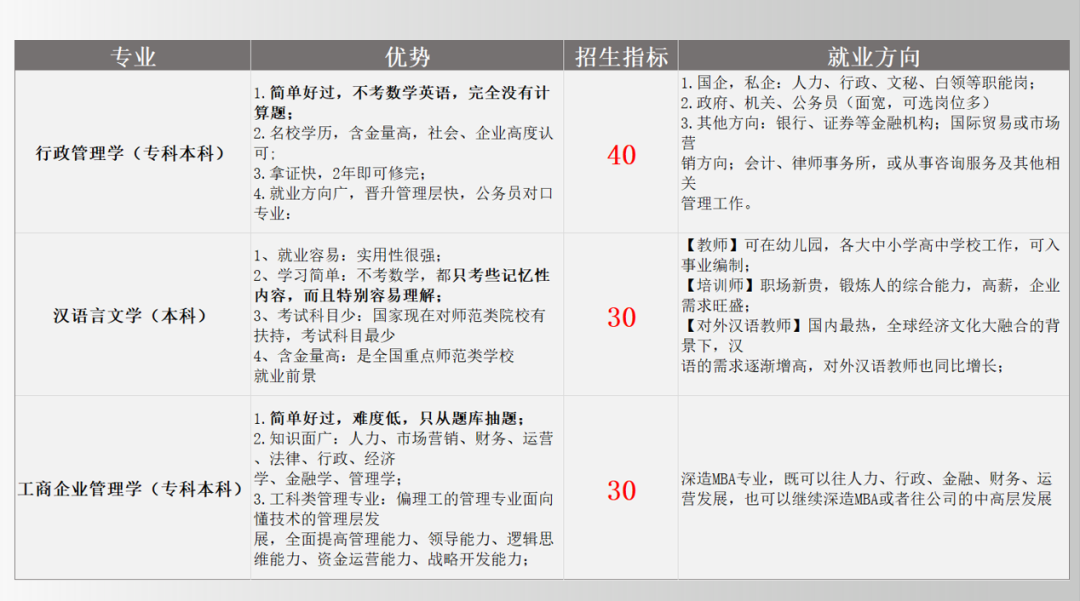 ☑对成年人友好:部分专业不考高等数学和大学英语。