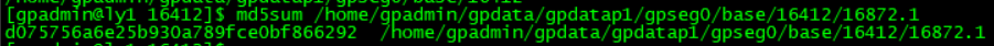 md5sum /home/gpadmin/gpdata/gpdatap1/gpseg0/base/16412/16872.1