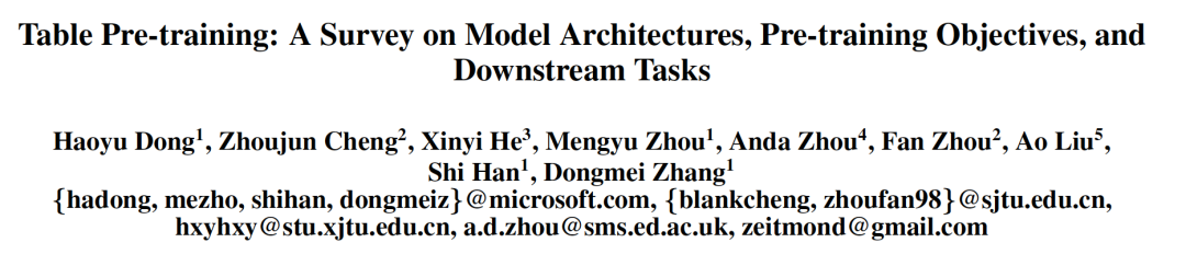 本周推荐的是发表于IJCAI 2022的一篇综述:Table Pre-training: A Survey on Model Architectures, Pre-training Objectives, and Downstream Tasks,对现有表格预训练模型的模型设计、预训练目标和下游任务进行了归纳和概括,并提出了若干挑战和未来发展方向。作者来自微软和上海交通大学等。