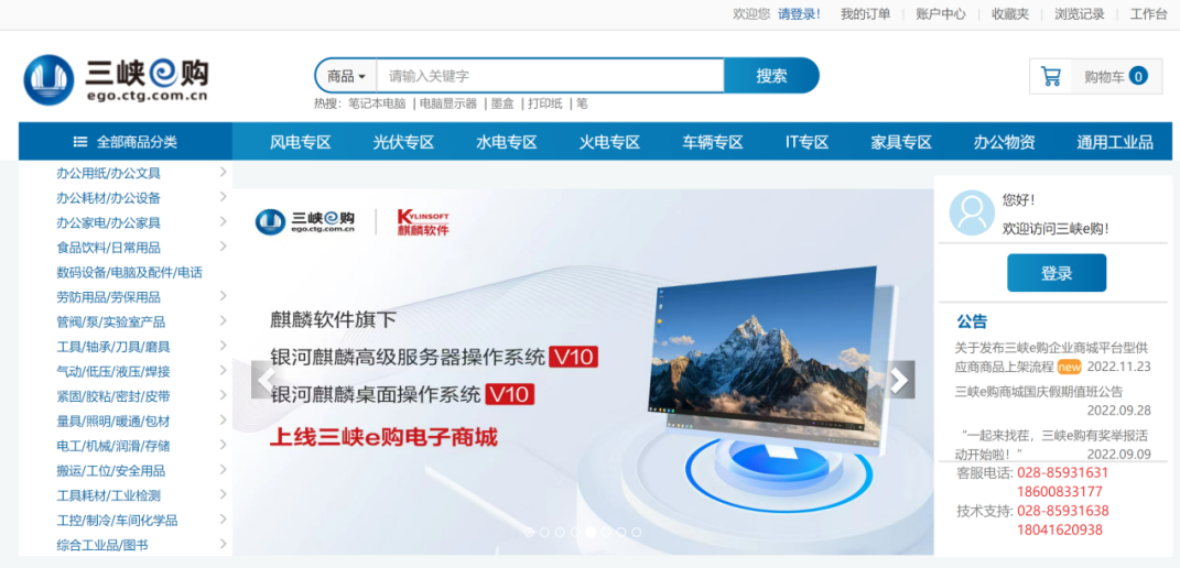 三峡e购电子商城是中国长江三峡集团推进央企等重点企业信息安全、自主以及可控的重要举措,也是中国长江三峡集团推进企业信息化建设的重要工程。中国长江三峡集团严格落实国资委2021年6月18日《关于做好2021年中央企业推进使用正版软件工作的通知》,结合集团内部软件正版化及自主创新进程的推进工作,在软件应用方面与国产品牌深度合作,银河麒麟高级服务器操作系统V10、银河麒麟桌面操作系统V10等国产软件入驻三峡e购电子商城,实现了软件类商品的电商化集采,实现控制采购渠道、提升采购效率、保障采购质量的效果。