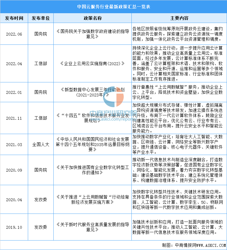 近年来,我国先后发布了《中华人民共和国国民经济和社会发展第十四个五年规划和2035年远景目标纲要》《“十四五”软件和信息技术服务业发展规划》、《“十四五”数字经济发展规划》等一系列政策文件,并将云服务列为数字经济重点产业,实施上云用云行动,促进数字技术与实体经济深度融合,赋能传统产业转型升级。