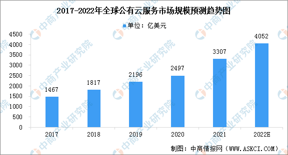 全球云计算市场逐步回暖,增速实现触底反弹。随着经济回暖,全球云计算市场所受影响逐步减弱,至2021年已基本恢复到疫情前增长水平。根据Gartner统计,2021年以laaS、PaaS、SaaS为代表的全球公有云市场规模达到3307亿美元,增速32.5%,预计2022年全球公有云市场规模将增至4052亿美元。