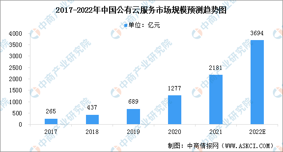 近年来,我国云计算市场持续高速增长。2021年中国云计算总体处于快速发展阶段,市场规模达3229亿元,较2020年增长54.4%。其中,公有云市场继续高歌猛进,规模增长70.8%至2181亿元,有望成为未来几年中国云计算市场增长的主要动力,预计2022年中国公有云服务市场规模将达到3694亿元。