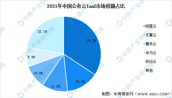从厂商市场竞争格局来看,目前我国公有云服务市场商场市场份额较为集中。据中国信息通信研究院调查统计,阿里云、天翼云、腾讯云、华为云、移动云占据中国公有云laaS市场份额前五;公有云PaaS方面,阿里云、华为云、腾讯云、百度云处于领先地位。