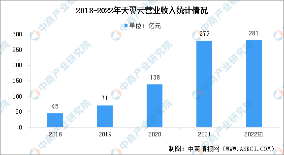 天翼云是中国电信旗下云计算品牌,于2016被中国电信注册,是中国电信旗下的云计算服务提供商。2016年,天翼云发布天翼云3.0,全面升级技术、改善服务质量、创新业务产品,提升“天翼云”核心竞争力,满足各行业对云计算的需求。2021年,天翼云收入实现翻番,达到279亿元,同比增长102%。2022年上半年,天翼云收入281亿元,同比增长100.8%。