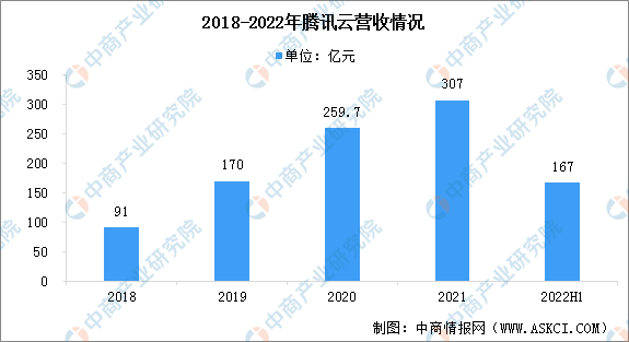 腾讯是中国最大的互联网综合服务提供商之一,也是中国服务用户最多的互联网企业之一。2020年疫情期间,腾讯会议、政务平台等基于云服务的产品表现突出,腾讯云布局更多5G和工业互联网技术。目前腾讯已有300多款原生产品共同筑建完善的云产品体系。2021年腾讯云云计算收入307亿元,2022上半年收入167亿元。