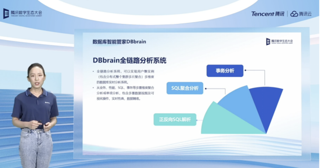 针对腾讯云数据库SaaS服务的重要产品——数据库智能管家DBbrain,腾讯云数据库研发工程师董懂重点讲解了今年新推出的全链路分析系统能力,并分享了其帮助金融客户实现精细化运维的实际案例。