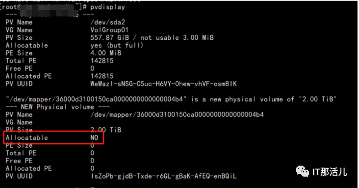 pvcreate /dev/mapper/36000d3100150ca0000000000000004b4 -u
