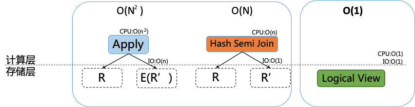 Apply 这个名字来源于 LISP:指一类特殊的函数,入参是一个参数列表的集合,返回值是对应的一个结果列表集合。从关系代数数据库语义上看与关联子查询的嵌套执行过程类似。最早由微软 SQL Server 论文提出。
