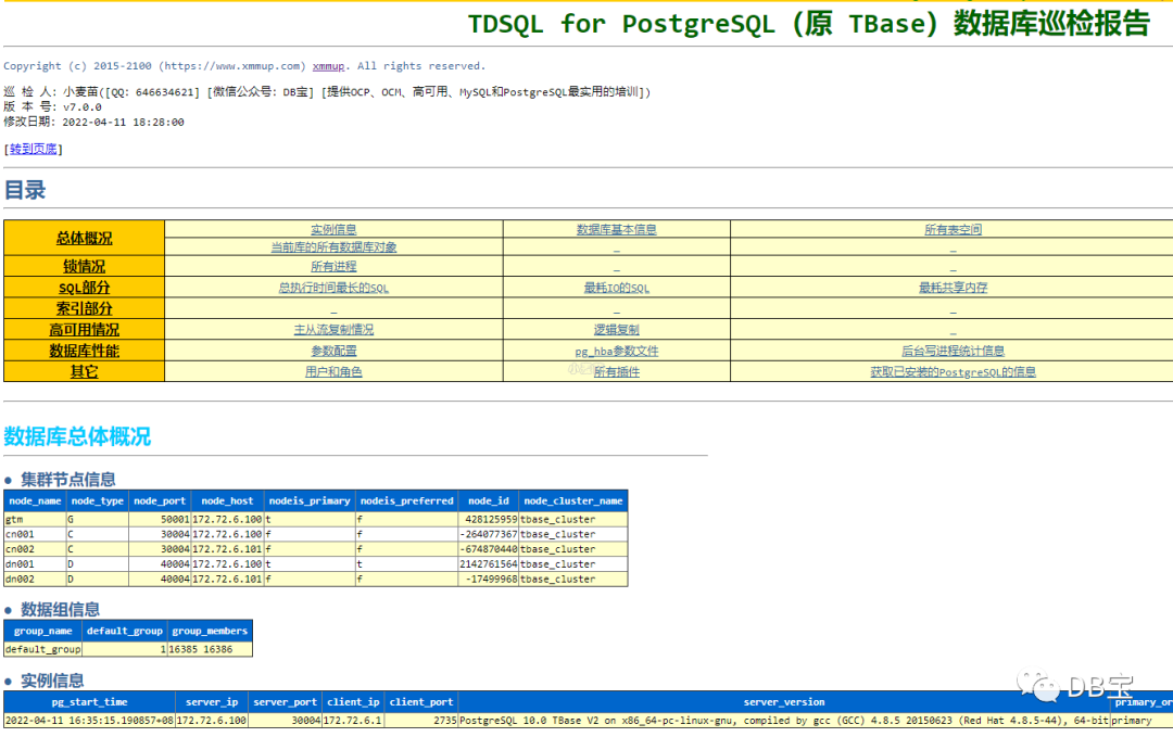 16、2022.4.11加上了对TDSQL for PostgreSQL(原 TBase)数据库的巡检