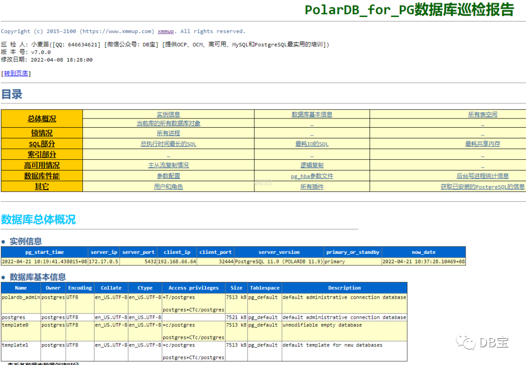 19、2022.4.21加上了对PolarDB_for_PG数据库的巡检