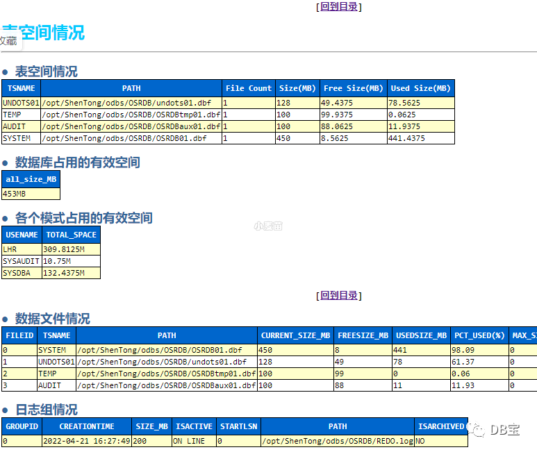 目前一共包含23个脚本,若脚本的扩展名为“.sql”则表示该脚本为sql脚本;若脚本的扩展名为“.pl”则表示该脚本为perl脚本;若脚本的扩展名为“.sh”则表示该脚本为shell脚本。 对于Oracle的SQL脚本而言,脚本DB_Oracle_HC_lhr_v7.0.0_10g.sql适用于Oracle 10g数据库,脚本DB_Oracle_HC_lhr_v7.0.0_11g.sql适用于Oracle 11g的数据库,脚本DB_Oracle_HC_lhr_v7.0.0_12c.sql适用于Oracle 12c及其以上版本,这3个脚本都是只读版本,这3个脚本只会对数据库做查询操作,不会做DML和DDL操作,这也是很多朋友所期待的功能。 脚本DB_OS_HC_lhr_v7.0.0.pl是perl脚本,执行后会对OS的信息进行收集,并且输出到html中。脚本DB_OS_HC_lhr_v7.0.0.sh是shell脚本,执行后会对OS的信息进行收集。 脚本DB_MySQL_HC_lhr_v7.0.0.sql是MySQL脚本,执行后会产生MySQL的健康检查html报告,该脚本为只读脚本。 脚本DB_MSSQL_HC_lhr_v7.0.0_2005.sql和DB_MSSQL_HC_lhr_v7.0.0_2008R2.sql是SQL Server脚本,存在部分DDL和DML操作,执行后会产生SQL Server的健康检查html报告。脚本DB_MSSQL_HC_lhr_v7.0.0_2005.sql最低支持2005版本,而脚本DB_MSSQL_HC_lhr_v7.0.0_2008R2.sql最低支持2008R2版本。 脚本DB_PG_HC_lhr_v7.0.0.sql是PG数据库脚本,执行后会产生PostgreSQL数据库的健康检查html报告。 脚本DB_GP_HC_lhr_v7.0.0.sql是Greenplum数据库脚本,执行后会产生Greenplum数据库的健康检查html报告。 脚本DB_DM_HC_lhr_v7.0.0是达梦数据库脚本,执行后会产生达梦数据库的健康检查html报告。 脚本DB_TiDB_HC_lhr_v7.0.0.sql是TiDB数据库脚本,执行后会产生TiDB数据库的健康检查html报告。 脚本DB_openGauss_HC_lhr_v7.0.0.sql是openGauss数据库脚本,执行后会产生openGauss数据库的健康检查html报告。 脚本DB_DB2_HC_lhr_v7.0.0.sql是DB2数据库脚本,执行后会产生DB2数据库的健康检查html报告。 脚本DB_OceanBase_HC_lhr_v7.0.0.sql是DB2数据库脚本,执行后会产生OceanBase数据库的健康检查html报告。 脚本DB_kingbase_HC_lhr_v7.0.0.sql是人大金仓数据库脚本,执行后会产生人大金仓数据库的健康检查html报告。 脚本DB_GreatDB_HC_lhr_v7.0.0.sql是万里GreatDB数据库脚本,执行后会产生万里GreatDB数据库的健康检查html报告。 脚本DB_TBase_HC_lhr_v7.0.0.sql是TDSQL for PostgreSQL(原 TBase)数据库脚本,执行后会产生TDSQL for PostgreSQL(原 TBase)数据库的健康检查html报告。 脚本DB_MogDB_HC_lhr_v7.0.0.sql是MogDB数据库脚本,执行后会产生云和恩墨MogDB数据库的健康检查html报告。 脚本DB_OushuDB_HC_lhr_v7.0.0.sql是OushuDB数据库脚本,执行后会产生OushuDB数据库的健康检查html报告。 脚本DB_PolarDB_for_PG_HC_lhr_v7.0.0.sql是PolarDB_for_PG数据库脚本,执行后会产生PolarDB_for_PG数据库的健康检查html报告。 脚本DB_OSCAR_HC_lhr_v7.0.0.sql是神州通用数据库脚本,执行后会产生神通数据库的健康检查html报告。