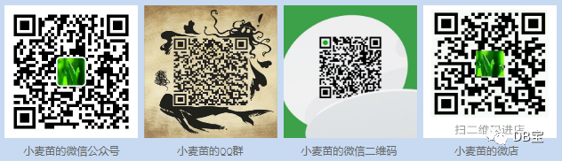 ● 版权所有,欢迎分享本文,转载请保留出处使用微信客户端扫描下面的二维码来关注小麦苗的微信公众号(DB宝)及QQ群(DBA宝典)、添加小麦苗微信, 学习最实用的数据库技术。