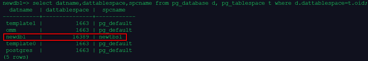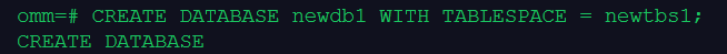 CREATE DATABASE newdb1 WITH TABLESPACE = newtbs1;