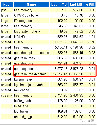 1. Many objects "ges resource dynamic" are allocated in the shared pool.
