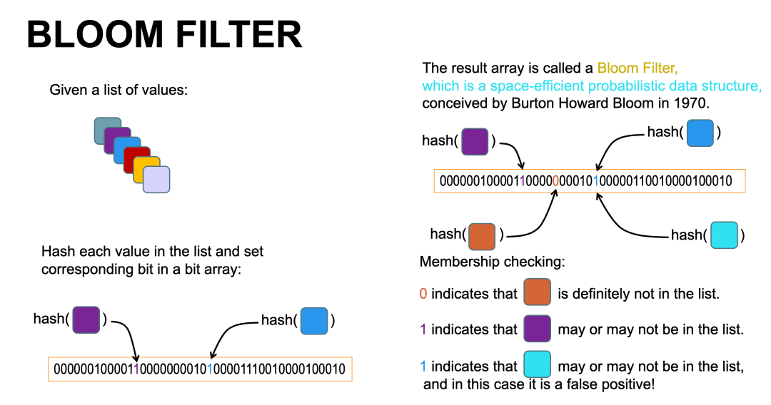 由BLOOM JOIN连接的BLOOM FILTER也被称为概率数据结构,它能够将大型数据压缩进一个非常复杂的数据结构,例如将原本几百个二进制位数据,变成只有一个或几个二进制位数据。因此,BLOOM FILTER比其他数据结构更节省空间,尽管它存在一定的误判,但这并不影响其性能优化目标的实现。