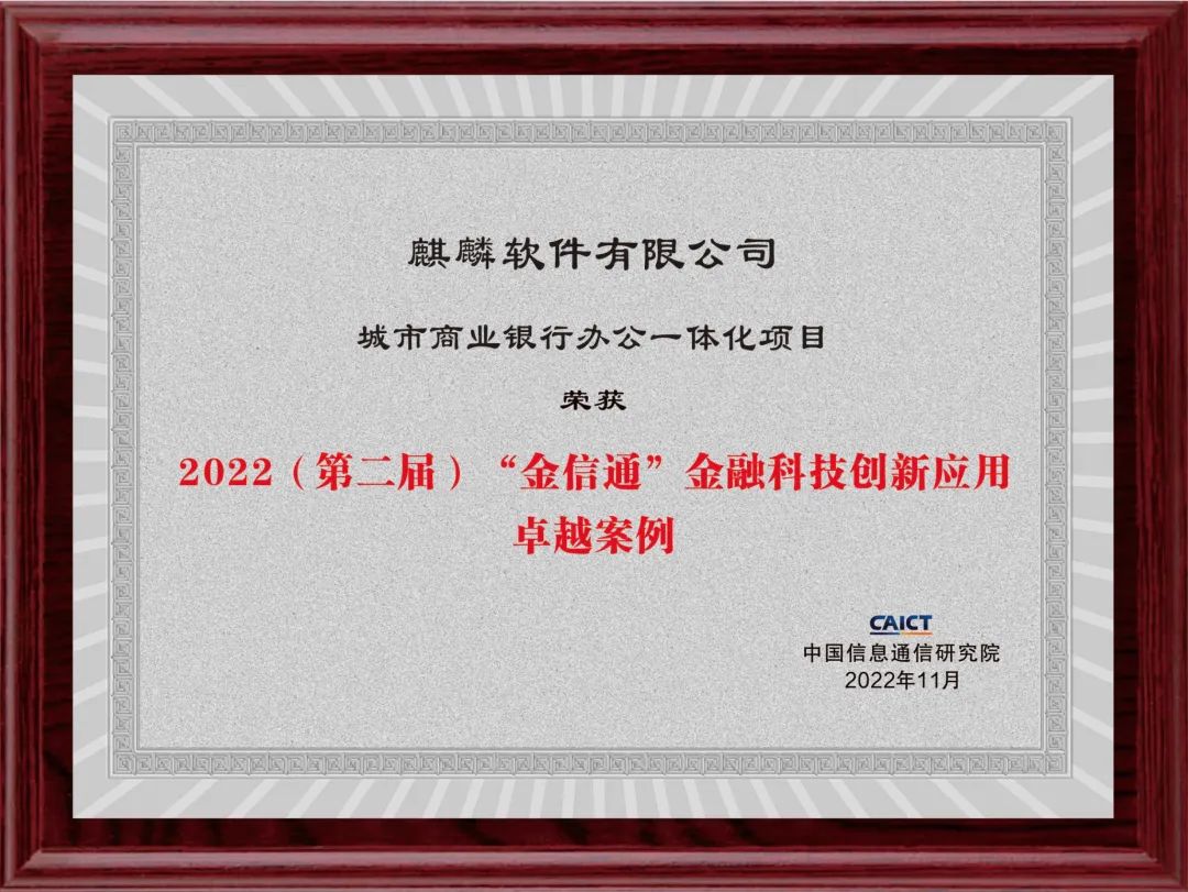 近日,在中国信通院主办的“让金融更科技”第五届中国金融科技产业峰会上,备受关注的《“金信通”金融科技创新应用案例集》重磅发布。麒麟软件申报的天津银行“城市商业银行办公一体化项目”成功入选,并荣获2022(第二届)“金信通”金融科技创新应用卓越案例奖。采用银河麒麟操作系统的中国光大银行等用户案例也成功获得相关奖项,麒麟软件不断为我国金融行业自主创新提供安全的“数字底座”。