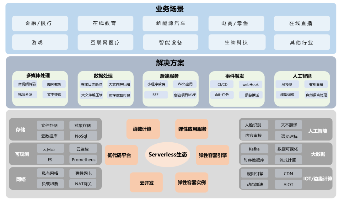 百度智能云面向公有云与私有化两个方面提供全套的serverless解决方案,已经涉及金融、新能源汽车、自动驾驶、教育、游戏、电商、城配、IOT、生物科技等多个领域。
