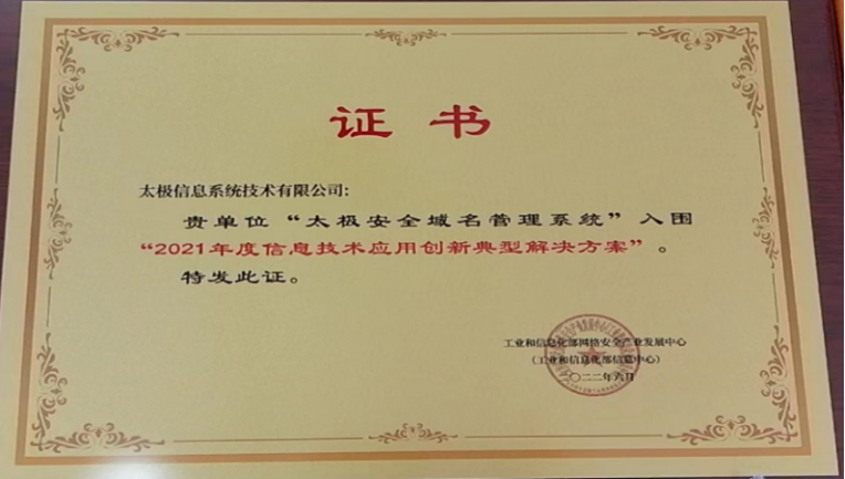 “太极安全域名管理系统”以申威系列第一款32核多路CPU“申威3231”为底层架构,建立起芯片级和处理器核级的安全体系,操作系统采用普华服务器操作系统V4.0,实现了基础设备和软件的定制化、精简化、国产化。该系统主要有两个特点:一个是突破域名服务领域核心技术。完成IPv6及双栈域名智能解析技术,域名安全解析防护技术,IDN及特殊资源记录技术,海量域名数据分析、解析优化处理等支撑下一代互联网规模部署的域名服务核心技术突破。另一个就是该系统以最小化组合成本,实现了解析性能高、轻量化及域名系统的高可靠性。整体而言,系统能够从底层架构、设备产品、系统功能和完善的管理等层面帮助建立全方位安全机制,提升域名基础设施的安全性能,从而构建一个安全可控的网络生态系统。